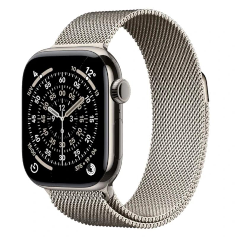 características: Chip – S10 chip with 64 bit dual-core processor – 4 core Neural Engine – 64 GB capacity Pantalla – Pantalla Retina siempre activa con OLED de gran angular y LTPO3 – Cristal frontal Ion-X con el doble de resistencia a los arañazos (cajas de aluminio)8 – Cristal frontal de zafiro (cajas de titanio) – Brillo máximo de hasta 2000 nits – Brillo mínimo de 1 nit – 326 píxeles por pulgada Controles – Corona digital con respuesta háptica – Botón lateral – Gestos de doble toque y giro de muñeca – Siri con procesamiento en el dispositivo Conectividad – Soporte para redes 2.4GHz y 5GHz Wi-Fi – Wi-Fi 4 (802.11n) – Bluetooth 5.3 – Soporte para RedCap para 5G y LTE – Roaming internacional Sensores – Sensor cardíaco eléctrico – Sensor cardíaco óptico de tercera generación – Sensor de oxígeno en sangre – Sensor de temperatura – Brújula – Altímetro siempre activo – Acelerómetro de alta aceleración – Giroscopio de alto rango dinámico – Sensor de luz ambiental – Sensor de profundidad hasta 6 metros – Sensor de temperatura del agua Salud y bienestar – Aplicación de Oxígeno en Sangre – Aplicación de ECG – Aplicación de Seguimiento del Ciclo con estimaciones retrospectivas de la ovulación – Aplicación de Frecuencia Cardíaca – Notificaciones de frecuencia cardíaca alta y baja – Notificaciones de ritmo irregular – Aplicación de Medicamentos – Aplicación de Mindfulness con seguimiento del estado de ánimo – Aplicación de Ruido – Aplicación de Sueño con fases del sueño – Puntuación del sueño – Notificaciones de apnea del sueño – Notificaciones de hipertensión Audio – Altavoz – Micrófono – Repoductor multimedia Seguridad – SOS de emergencia – Llamadas de emergencia internacionales – Detección de colisiones – Detección de caídas – Monitoreo de ruido – Retroceso Resistencia – Resistente al agua con profuncidad máxima de 50 metros – Resistente al polvo (IPX6) Alimentación – Batería de larga duración, hasta 24 horas de uso normal – Hasta 38 horas en modo de bajo consumo – Batería recargable de iones de litio integrada – Carga rápida – Hasta un 80 % de carga en unos 30 minutos – 15 minutos para hasta 8 horas de uso normal – 5 minutos para hasta 8 horas de monitorización del sueño Dimensiones y peso – 42 x 36 x 9,7 – 29,7 gramos