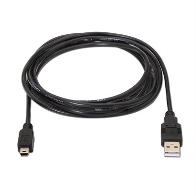 – Cable USB 2.0 con conector tipo A macho en un extremo y mini USB 5 pines macho en el otro.