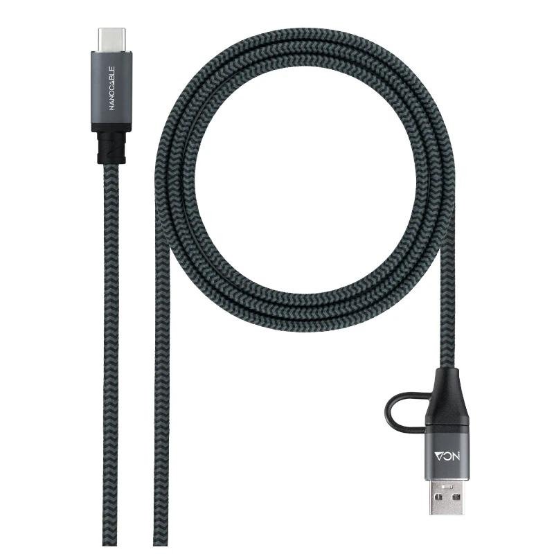 Características: – Conectores: USB-C y USB-A macho a USB-C macho (con adaptador) – Interfaz: USB 3.2 Gen2x2 – Velocidad de transferencia: hasta 20 Gbps – Carga: hasta 5 A / 100 W – Diseno del conector: USB-C reversible – Material del conector: aluminio – Recubrimiento del cable: mallado de algodon – Longitud: 1,5 m – Compatibilidad: Windows, macOS – Normativa: RoHS Contenido – 1 x cable USB 3.2 Gen2x2 20 Gbps 5 A / 100 W USB-C + USB-A a USB-C de 1,5 m