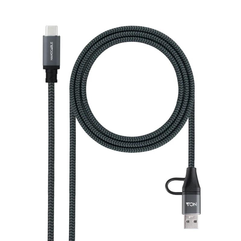 Características: – Conectores: USB-C y USB-A macho a USB-C macho (con adaptador) – Interfaz: USB 3.2 Gen2x2 – Velocidad de transferencia: hasta 20 Gbps – Carga: hasta 5 A / 100 W – Diseno del conector: USB-C reversible – Material del conector: aluminio – Recubrimiento del cable: mallado de algodon – Longitud: 2 m – Compatibilidad: Windows, macOS – Normativa: RoHS Contenido – 1 x cable USB 3.2 Gen2x2 20 Gbps 5 A / 100 W USB-C + USB-A a USB-C de 2 m
