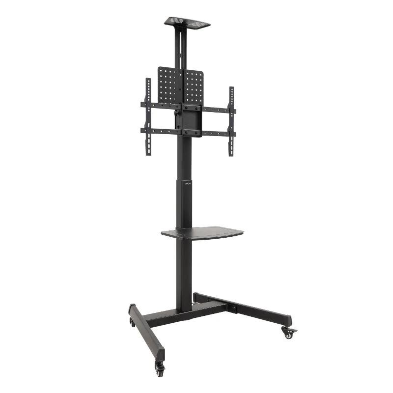 Características: – Pantallas soportadas: 37"-70" – Compatible con VESA: Máximo 600×400 Mínimo 200×200 – Peso máximo soportado de pantalla: 70 kg – Ángulo de inclinación: +5°/-12° – Ángulo de rotación de pantalla: 0°/+90° – Posición horizontal o vertical – Bandeja para reproductor/DVD y bandeja superior regulable para webcam – Ruedas con sistema de bloqueo – Apto para monitores curvos – Material: fabricado en acero de alta calidad Dimensiones y peso – Rango de ajuste de altura del soporte: 1120-1570 mm – Altura máxima con bandeja superior: 2148 mm – Distancia entre ruedas: 917 x 740 mm – Medida de bandejas: Inferior 410×340 mm. Superior 285×150 mm – Peso máximo soportado de la bandeja inferior: 5 Kg – Peso máximo soportado de la bandeja superior: 5 Kg – 23,6 kg Contenido – 1 x Soporte – 1 x Kit montaje – 1 x Manual de instalación