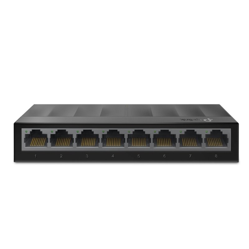 Características de Hardware: Estándares y Protocolos – IEEE 802.3i/802.3u/ 802.3ab/802.3xInterfaz – 8 Puertos×10/100/1000Mbps, Auto-Negociación, Auto-MDI/MDIXCantidad de Ventiladores – Sin ventiladorFuente de Alimentación – Adaptador de corriente externo (salida: 9VDC / 0.6A)Dimensiones – 127 × 66.5 × 23 mmConsumo de Potencia – Máximo: 3.9WMáxima Disipación de Calor- 13.299 Btu/hr